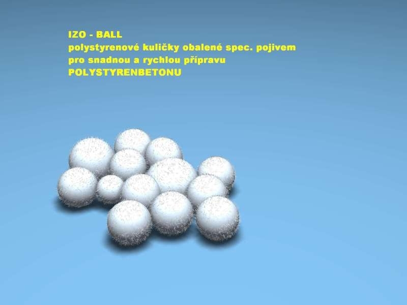 IZO-BALL jsou polystyrénové kuličky doplněné pojivem - mikrovláknem. Toto mikrovlákno slouží jako pojivá složka, která zajistí dokonalé spojení kuliček IZO-BALLu s cementem, vodou a pískem.